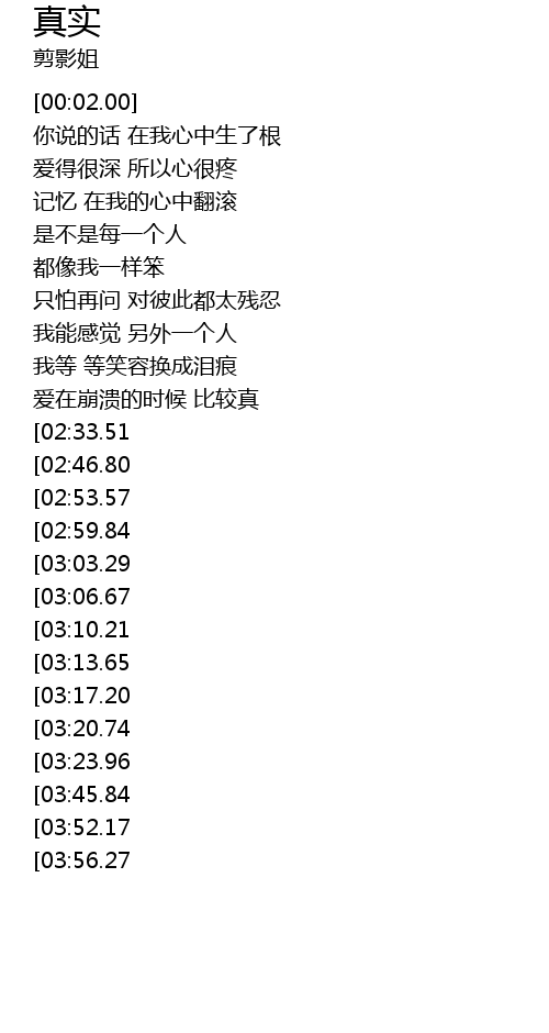 | [02:15.13][03:56.27] | 才是爱情真实的样子 |