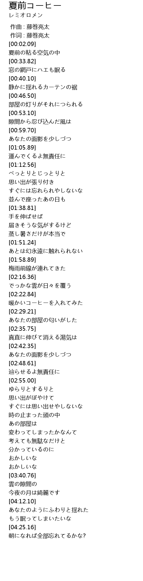 | [04:13.37] | あなたのようにふわりと揺れた |