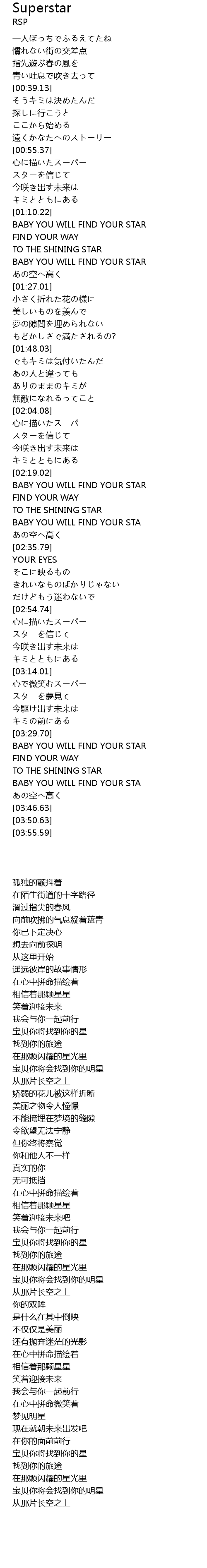 | [03:36.22] | TO THE SHINING STAR |