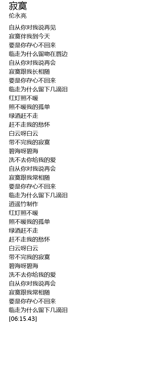 | [05:41.04] | 寂寞跟我常相随 |