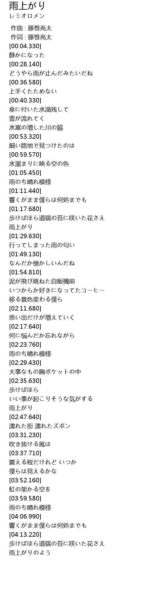 | [03:25.160] | 濡れた街 濡れたズボン |