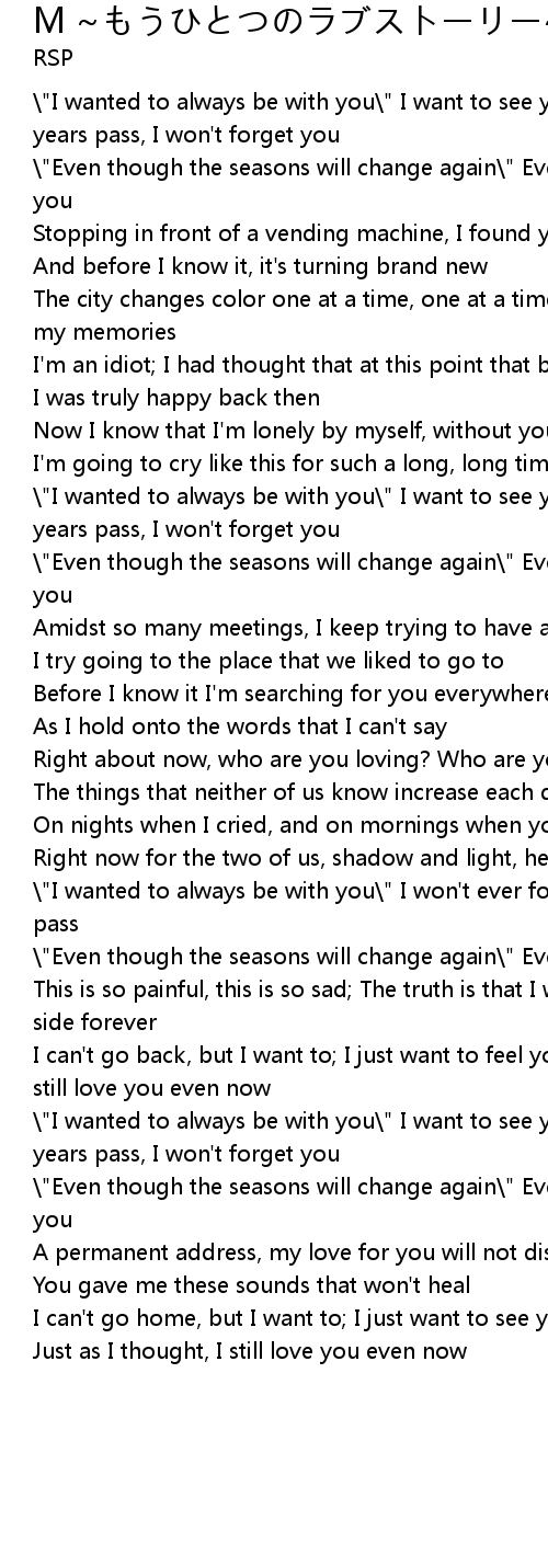 | \"Even though the seasons will change again\" Even now, I sing an unending M to you | |