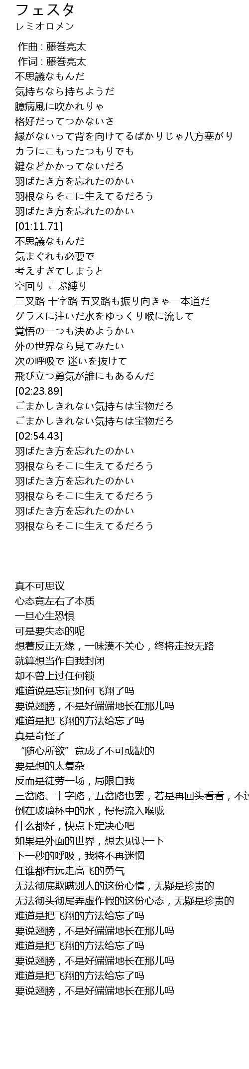 | [03:30.43] | 羽根ならそこに生えてるだろう |