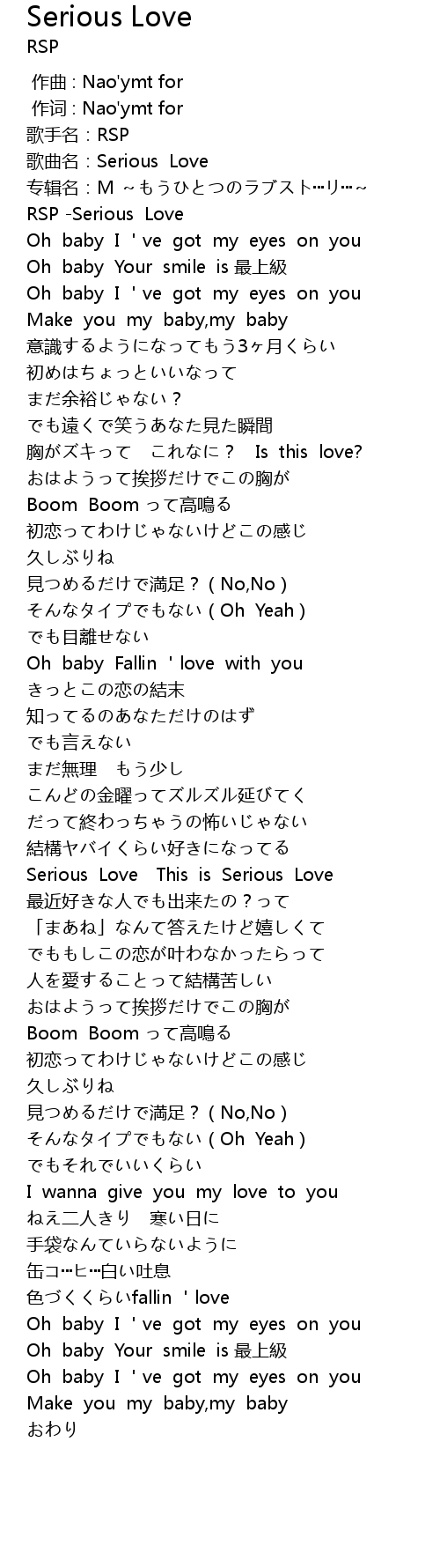 | [00:03.21] | gē qǔ míng: Serious Love |