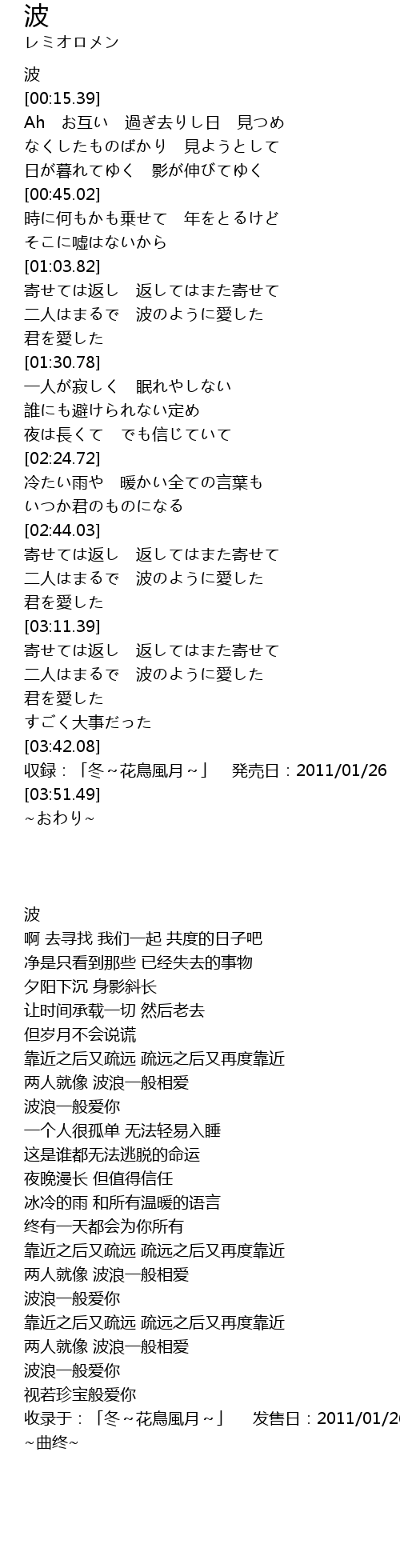 | [02:55.94] | 二人はまるで 波のように愛した |