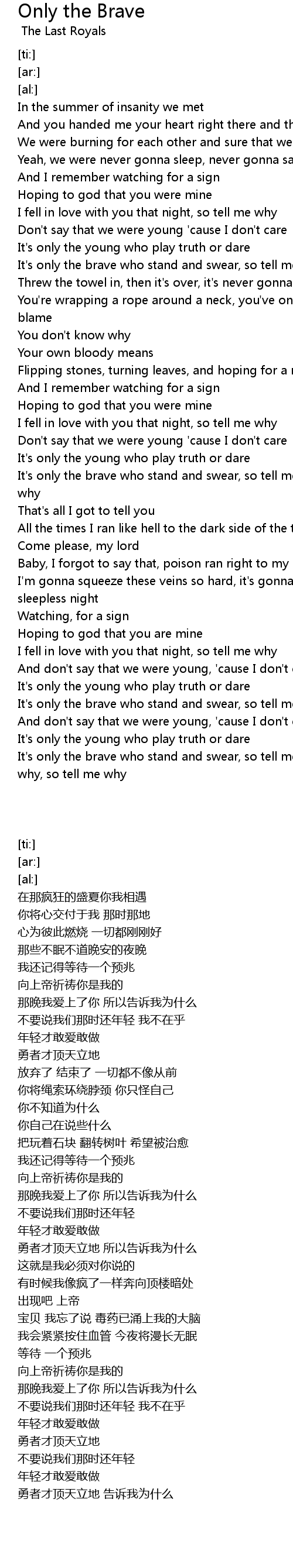 It's only the brave who stand and swear, so tell me why, so tell me why, so tell me why |