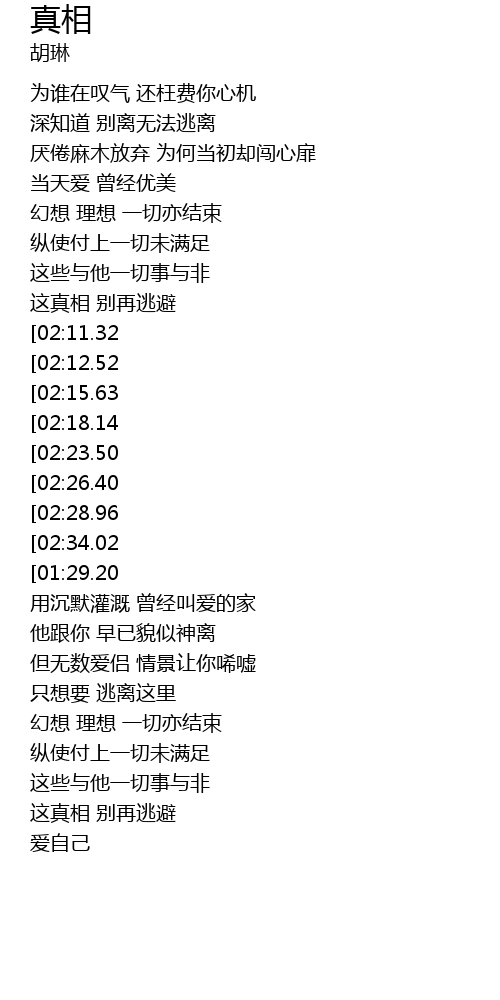 | [03:02.08][02:28.96][01:11.81] | shì zhè bù biàn dí zhēn lǐ |