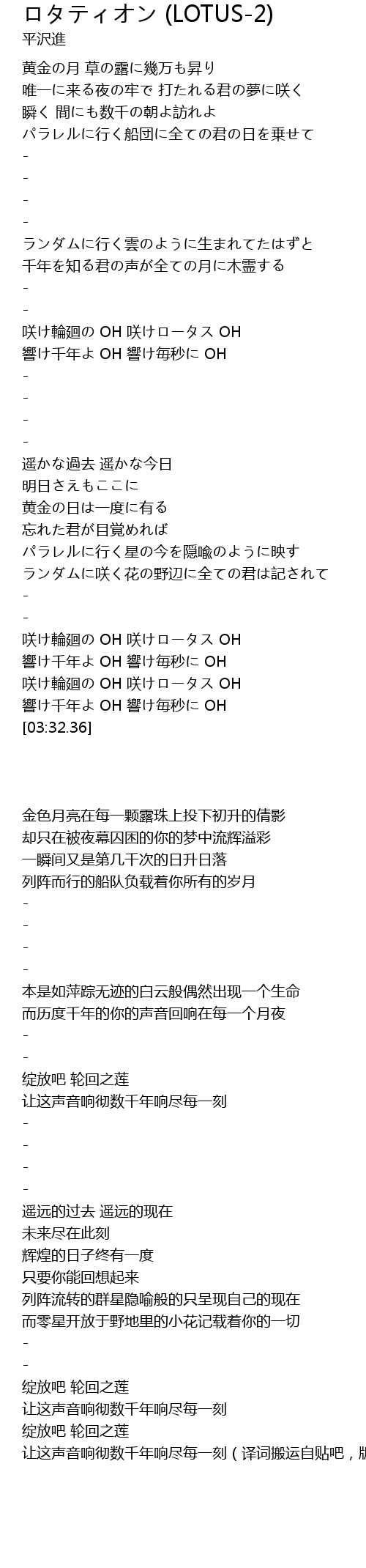 | [03:16.41] | 咲け輪廻の OH 咲けロータス OH |