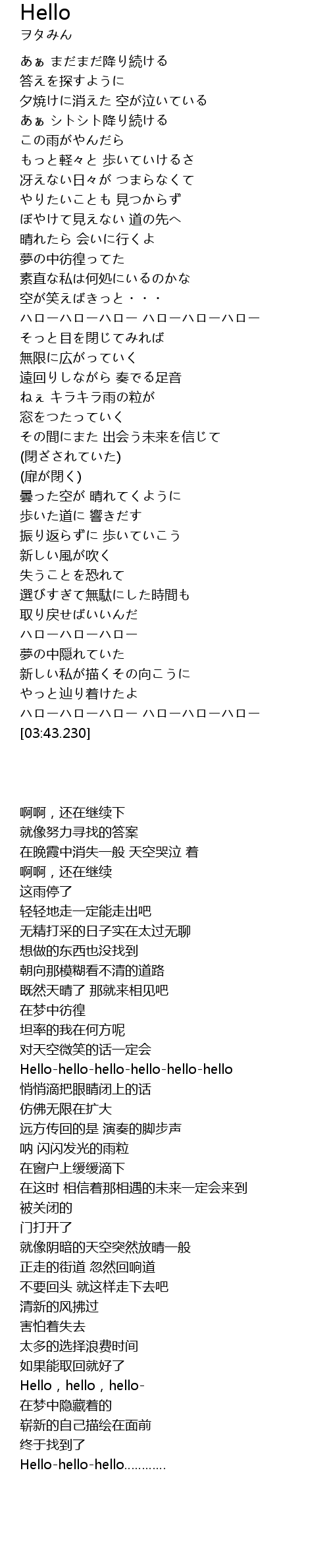 | [03:34.980] | ハローハローハロー ハローハローハロー |
