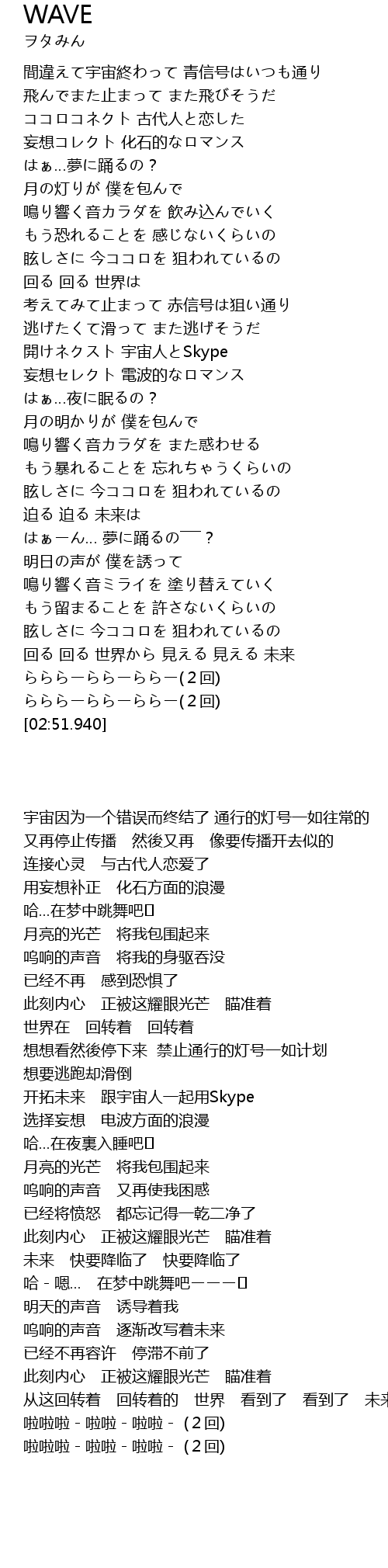 | [00:23.670] | 間違えて宇宙終わって 青信号はいつも通り |
