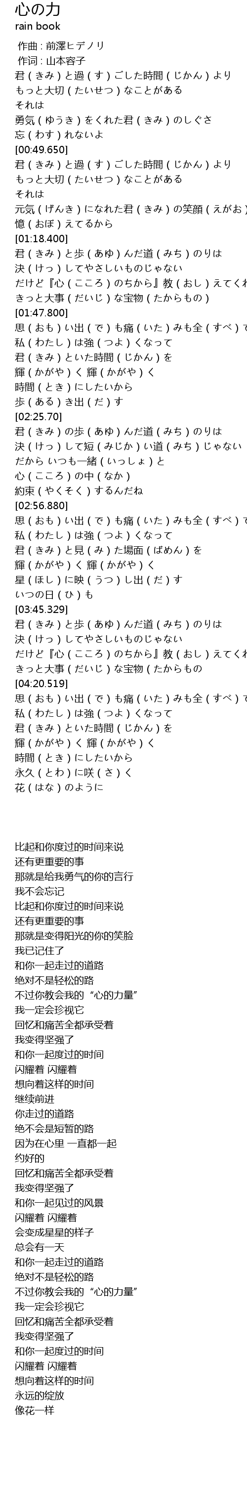 | [04:06.870] | だけど『心(こころ)のちから』教(おし)えてくれた |