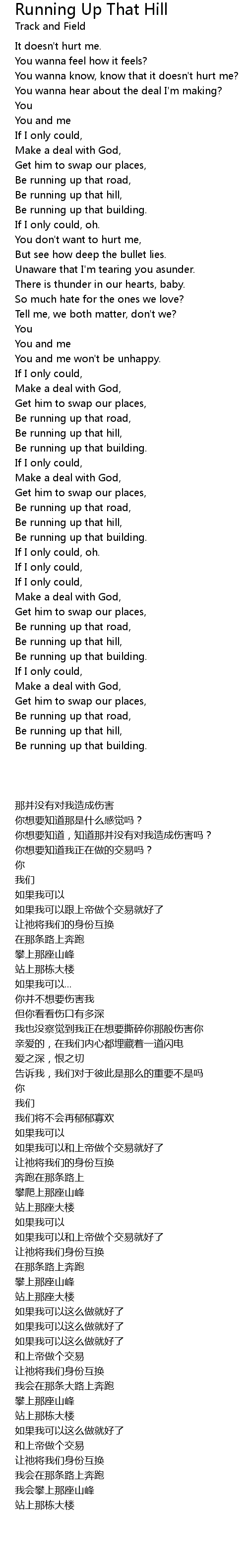 Be running up that hill, |