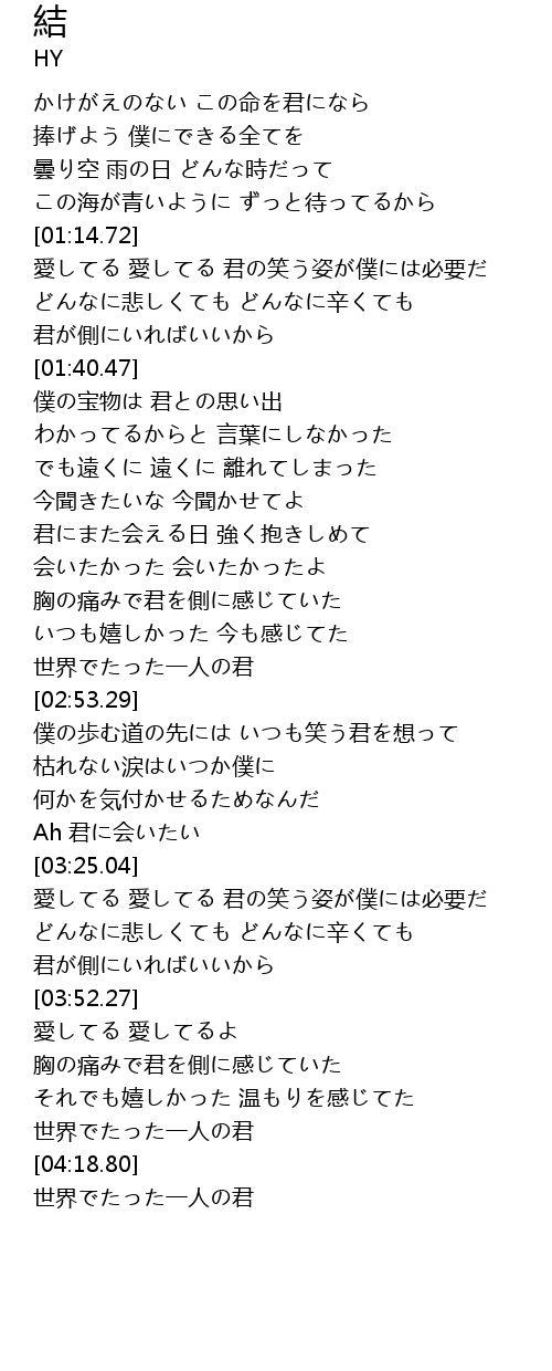 | [01:41.38] | 僕の宝物は 君との思い出 |