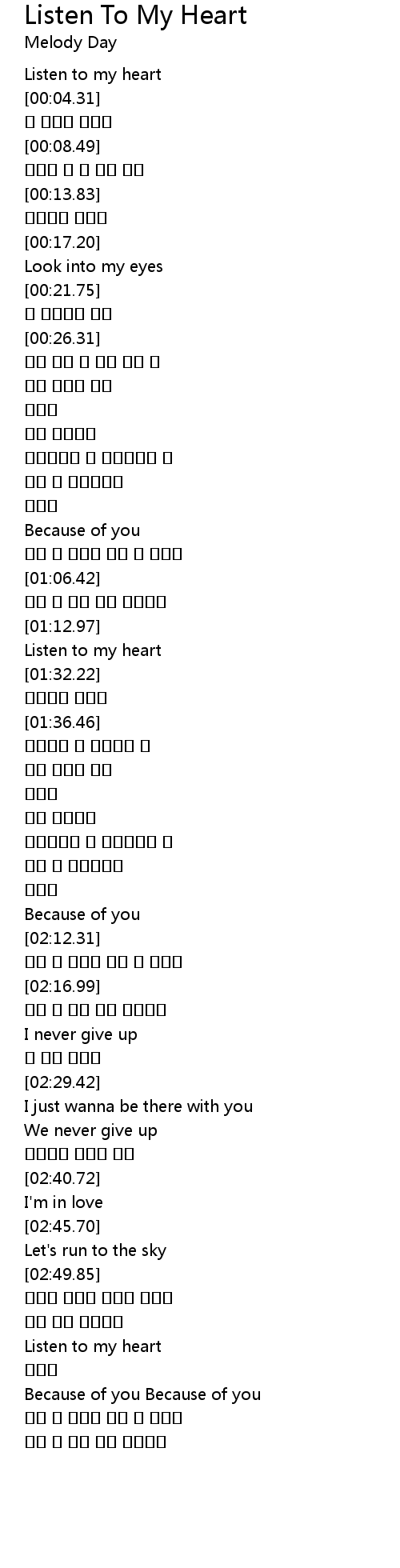 | [02:59.88] | Listen to my heart |