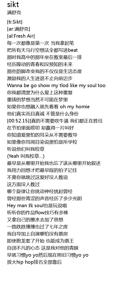| [01:43.96] | Hey man 我 soul也是玩说唱 |