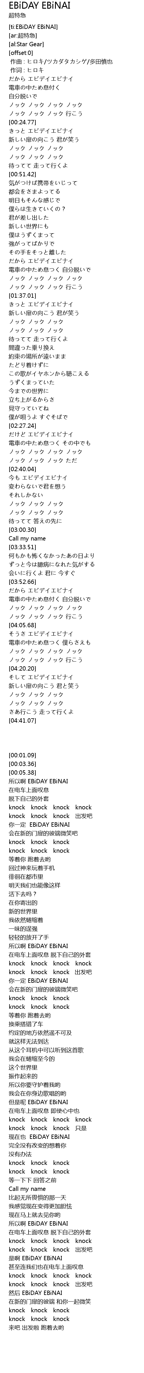| [04:07.24] | 是啊 EBiDAY EBiNAI |