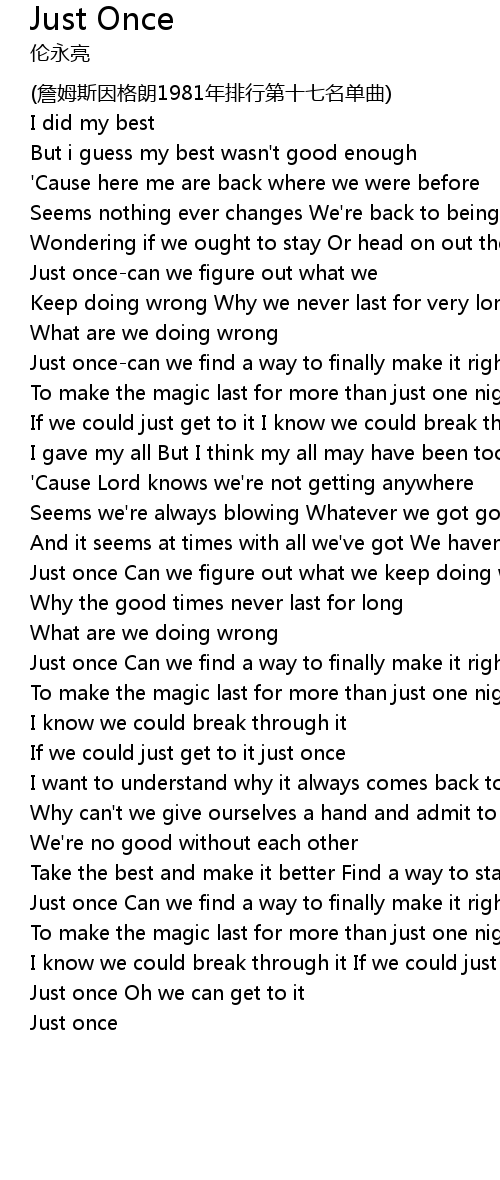 | (詹姆斯因格朗1981年排行第十七名单曲) | |