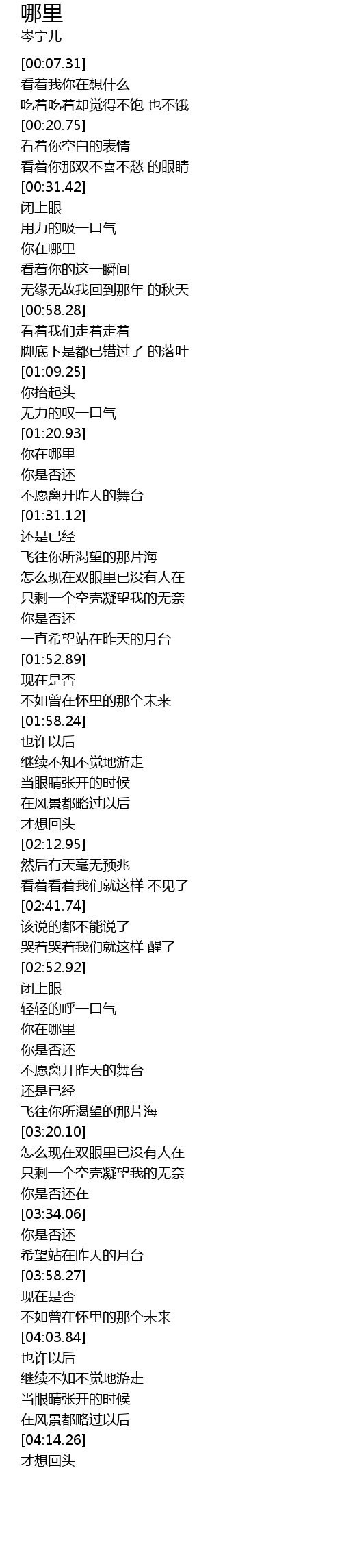 | [03:05.29] | nǐ zài nǎ lǐ |