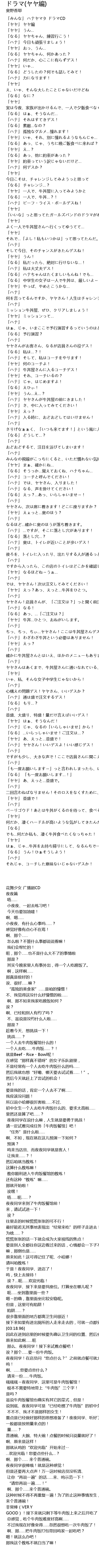 | [04:00.74] | 「ハナ」 ヤヤさんはあくまで、牛丼屋さんに通いなれている、女子中学生! |
