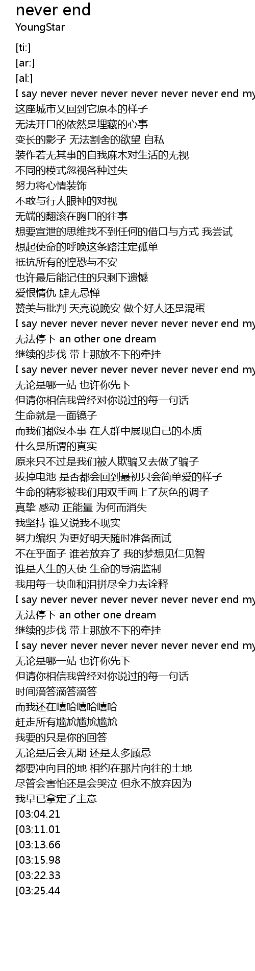 | [03:28.04][03:04.21] | I say never never never never never never end my baby |