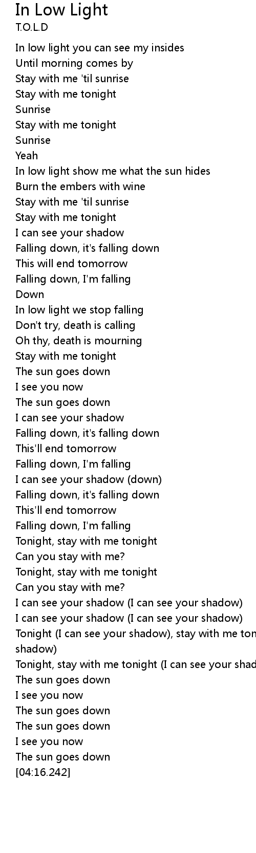 [03:36.293] Tonight, stay with me tonight (I can see your shadow)