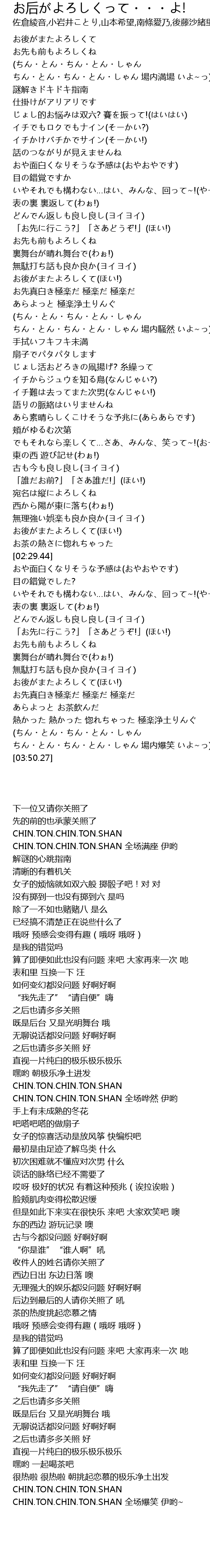 | [03:41.99] | CHIN.TON.CHIN.TON.SHAN 全场爆笑 伊哟~ |