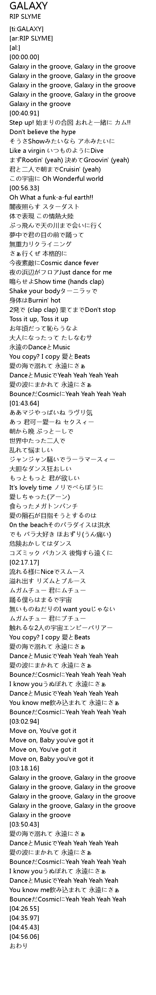 | [03:41.01] | Galaxy in the groove, Galaxy in the groove |