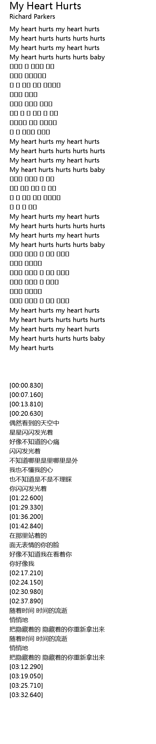 | [03:19.050] | My heart hurts hurts hurts hurts |