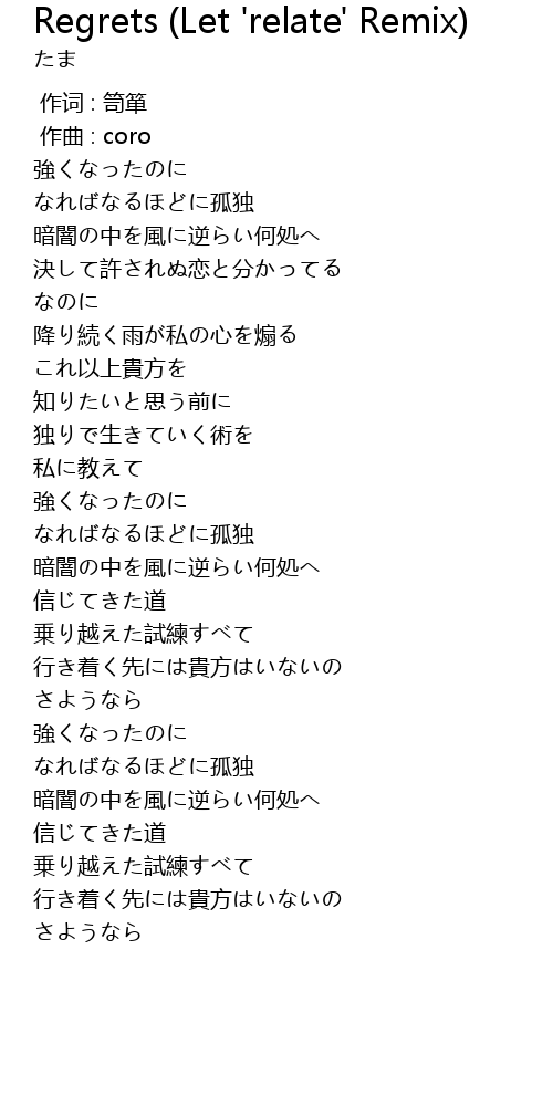 | 歌曲 | Regrets (Let 'relate' Remix) |