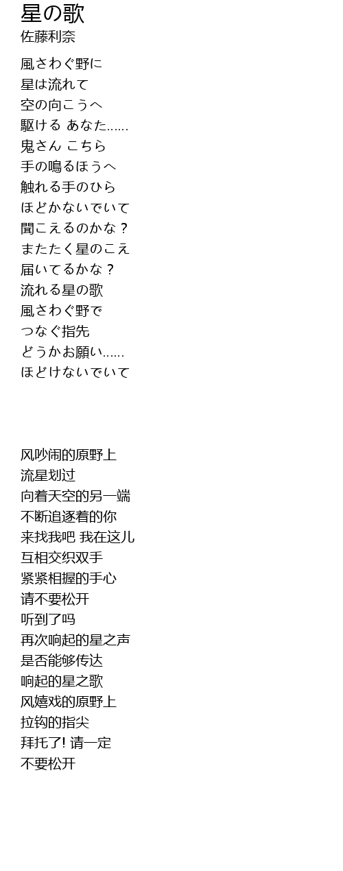 | 歌曲 | 星の歌 |