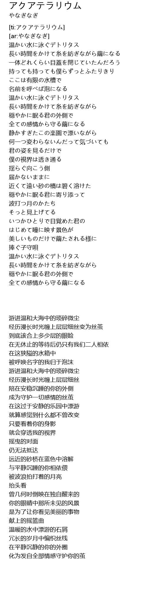 | [03:43.40] | 温暖的水中漂游的石屑 |