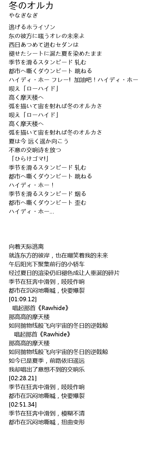 | [02:31.51] | 季节を滑るスタンピード 轧む |