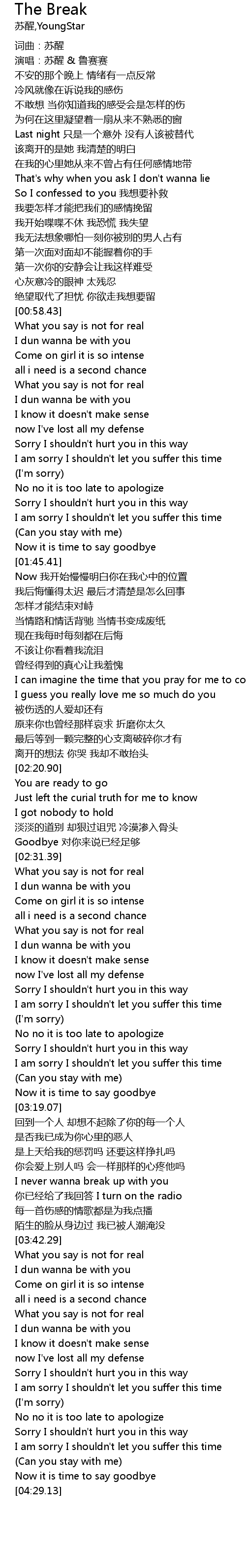 | [04:17.78] | Sorry I shouldn' t hurt you in this way |