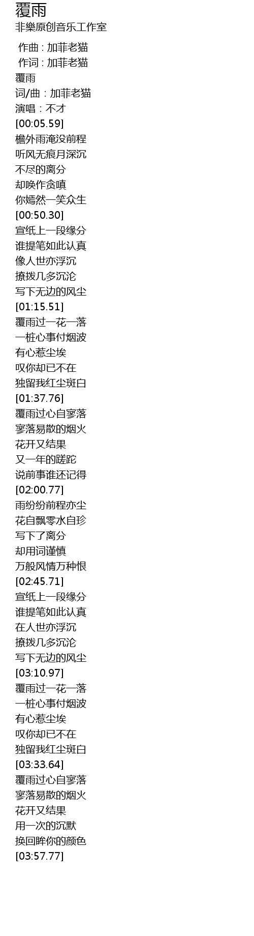 | [00:00.00] | 作曲 : 加菲老猫 |