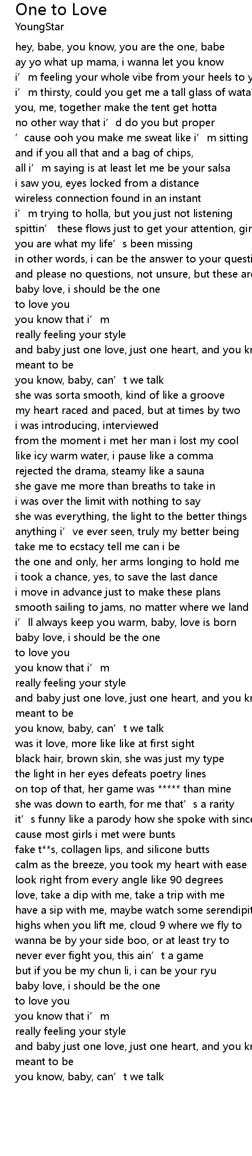 | [00:04.20] | hey, babe, you know, you are the one, babe |