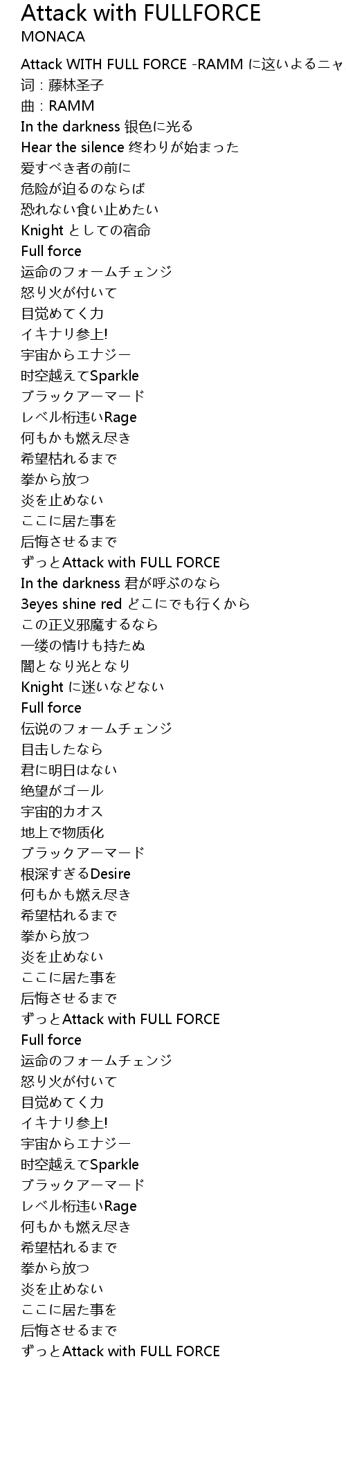 | [01:46.637] | ずっとAttack with FULL FORCE |