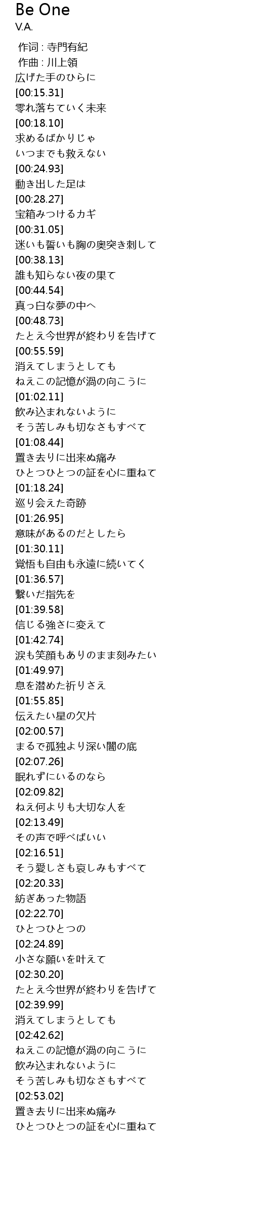 | [02:56.38] | ひとつひとつの証を心に重ねて |
