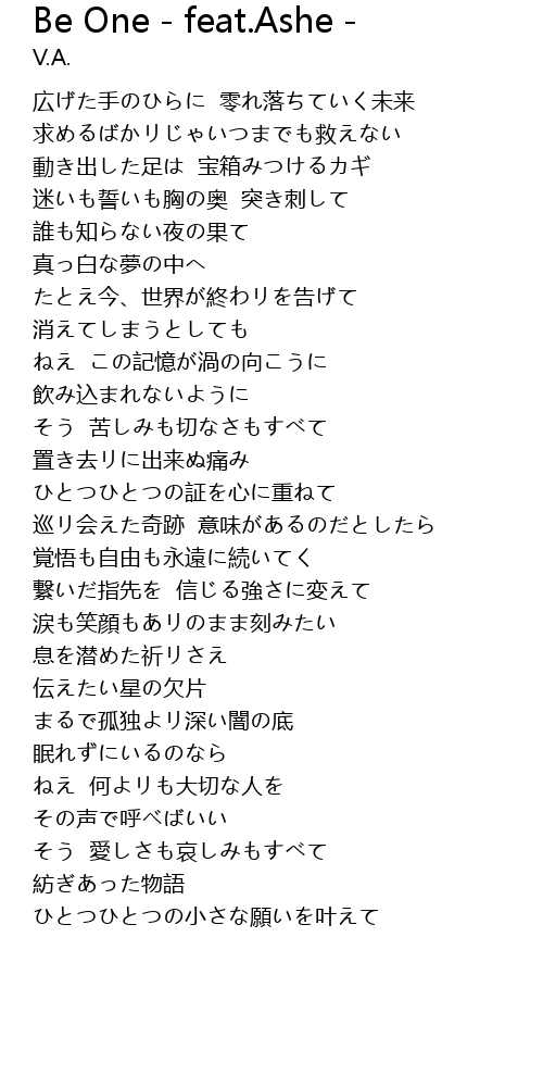 | 歌曲 | Be One - feat.Ashe - |