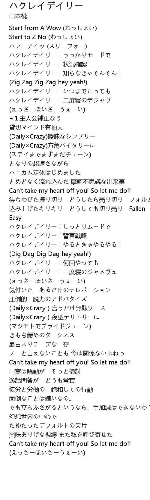 | [00:44.65] | (Daily×Crazy)方角バイタリーに |