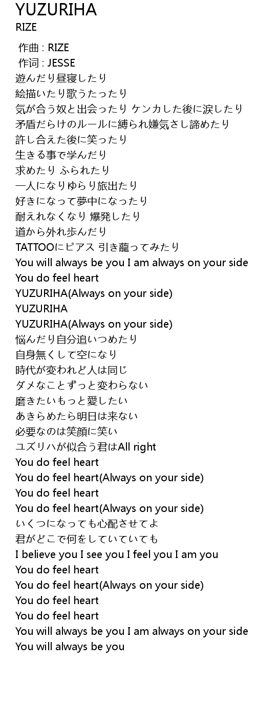 | [01:36.41] | YUZURIHA(Always on your side) |