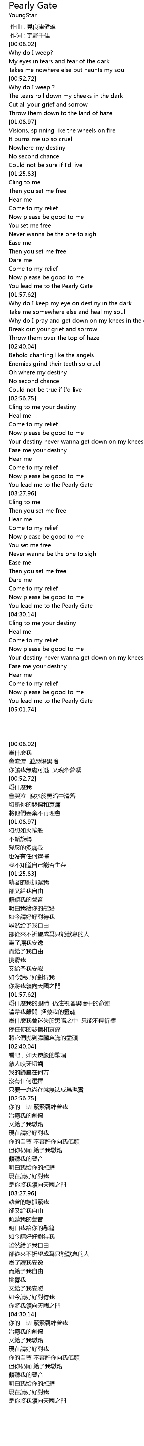 | 歌曲 | Pearly Gate |