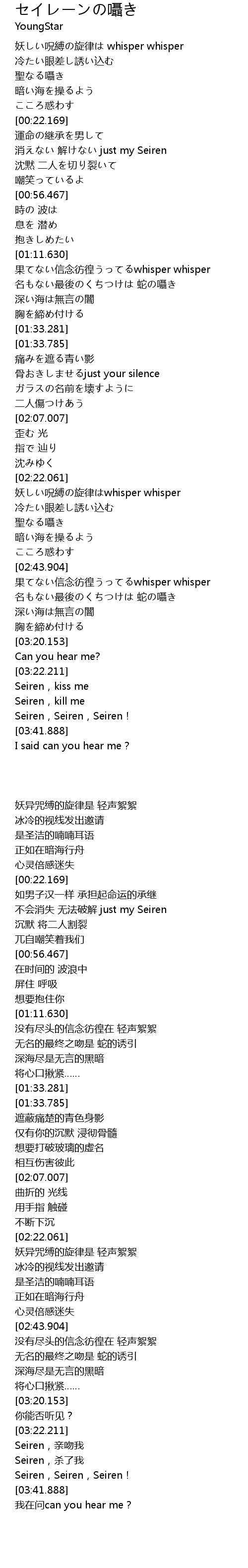 | [03:32.687] | Seiren,亲吻我 |