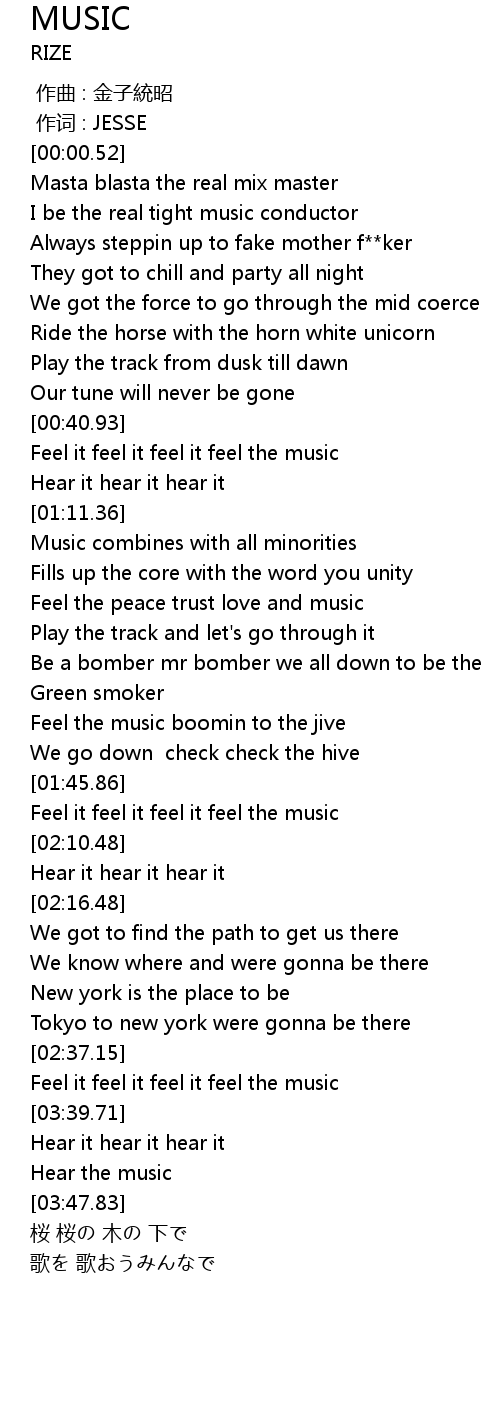 | [03:32.49] | Feel it feel it feel it feel the music |