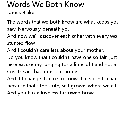 Words We Both Know 歌词