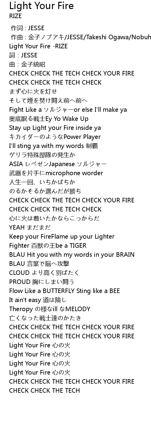 | [00:00.00] | Light Your Fire RIZE |