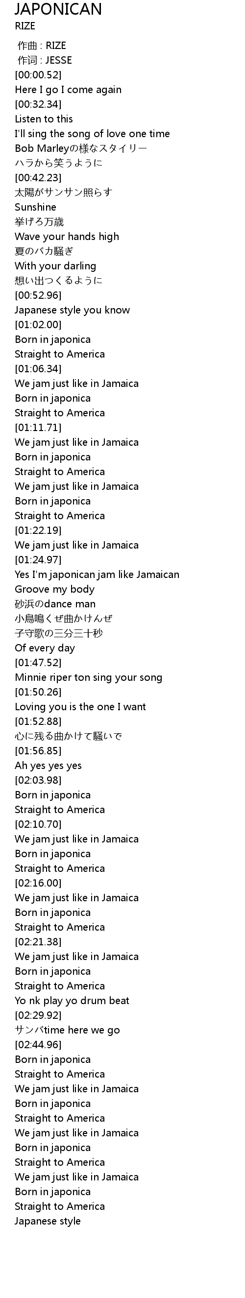 | [01:35.84] | Yes I' m japonican jam like Jamaican |