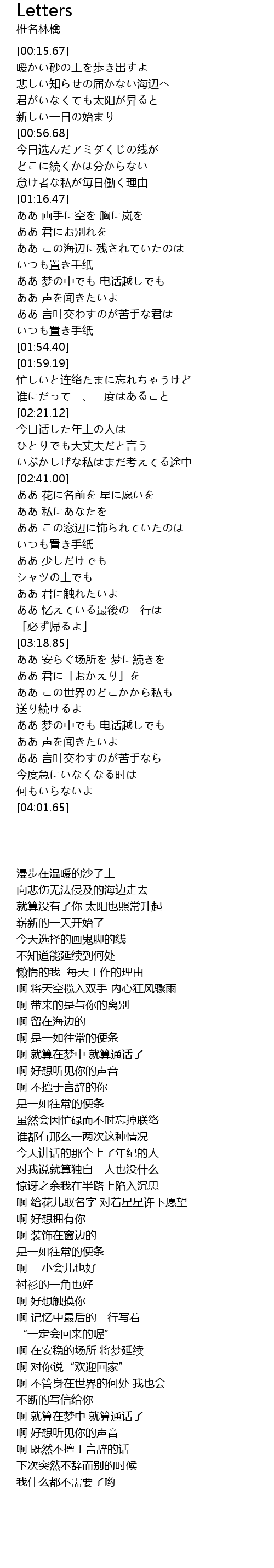 | [01:51.91] | いつも置き手纸 |