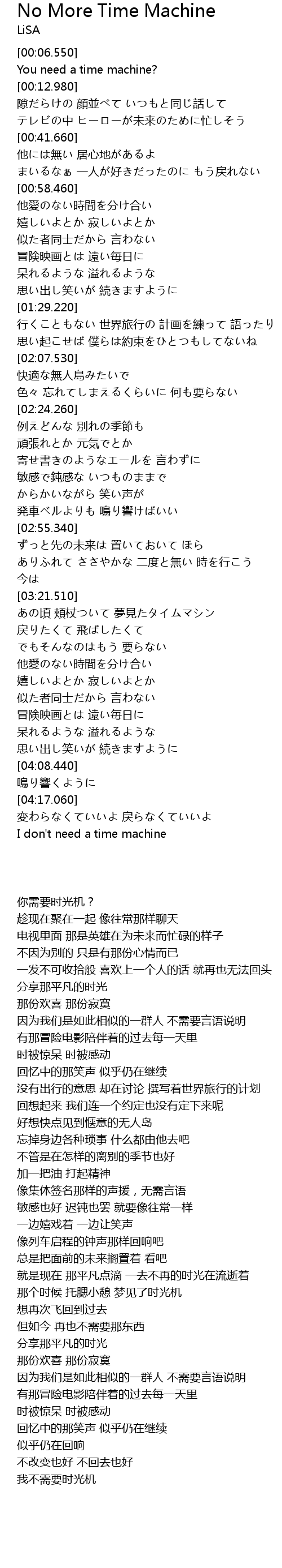 | [03:22.710] | あの頃 頬杖ついて 夢見たタイムマシン |