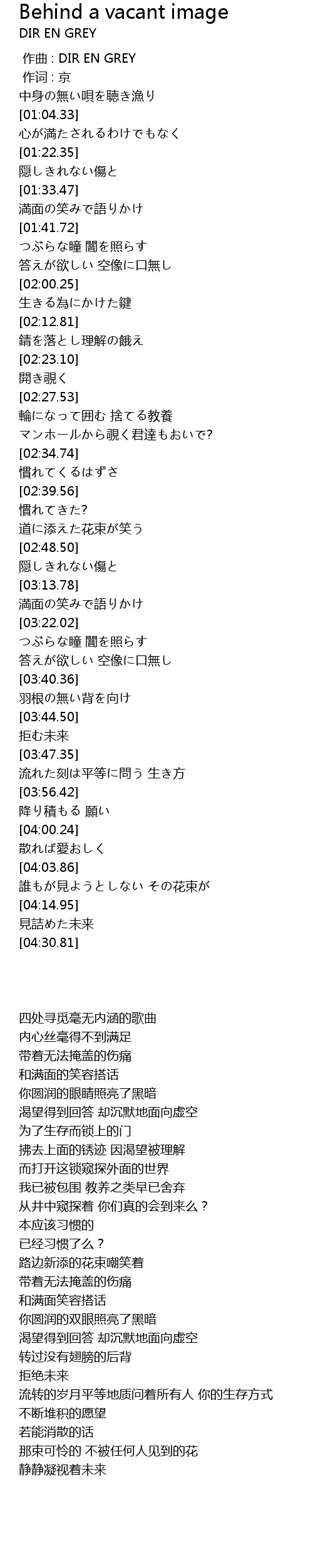 | [00:00.00] | zuo qu : DIR EN GREY |