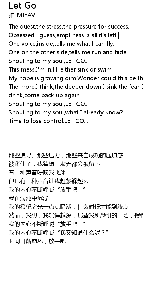 Shouting to my soul,LET GO... |